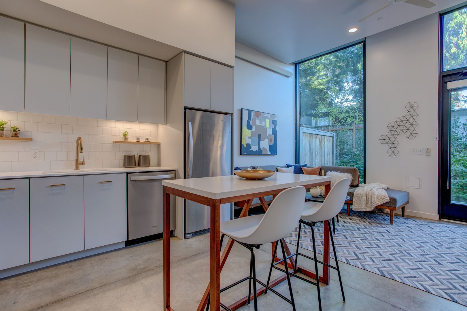Each home at Theory 33 features high-end finishes, expansive windows, and open-concept layouts that maximize light and livability. Enjoy stainless steel appliances, quartz countertops, custom cabinetry, and in-unit washer/dryer for a seamless blend of form and function. Select units include private balconies or city views, creating a peaceful retreat in the heart of it all.