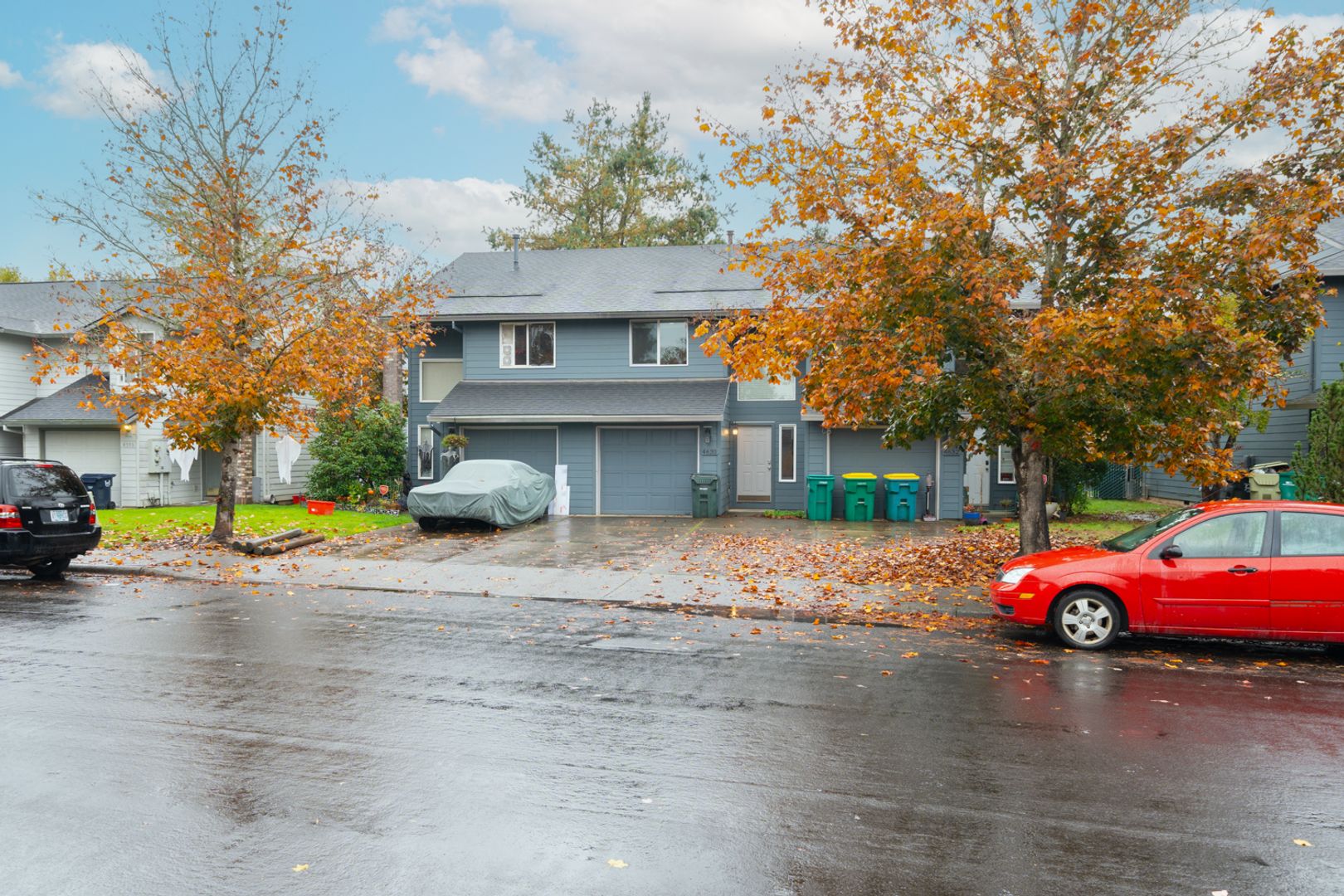This ideally located 3 bedroom triplex has a one car garage and parking for another vehicle in front of the garage.