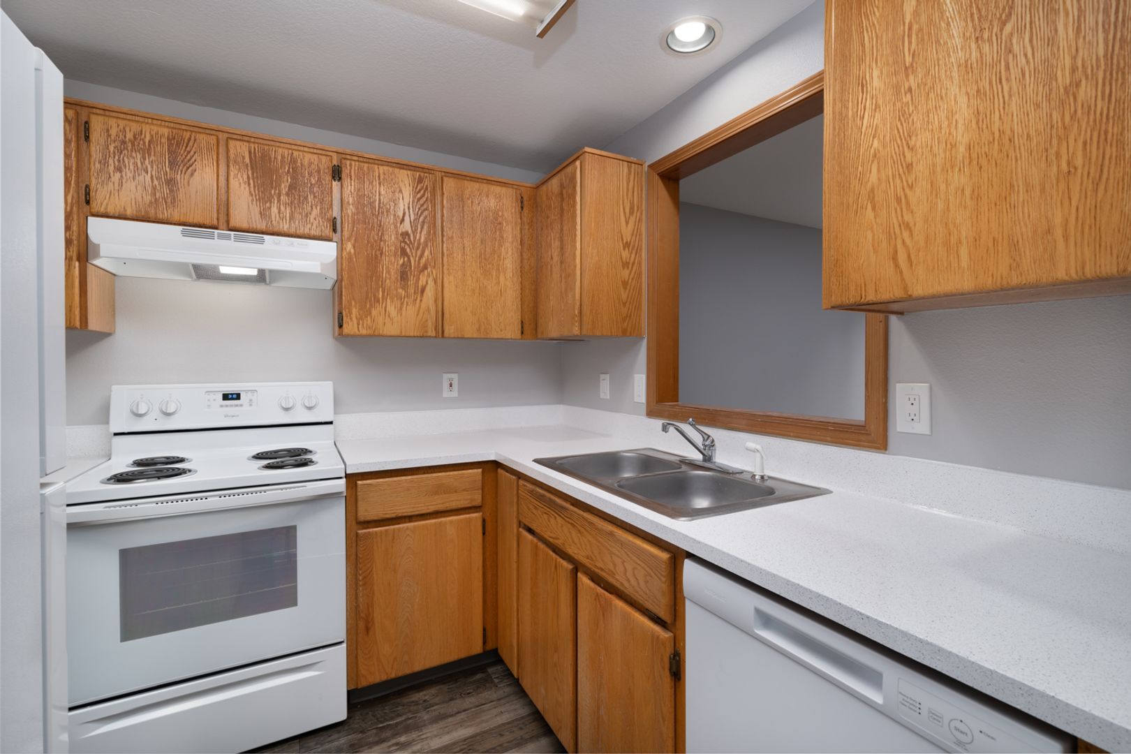 Nice kitchen with stainless Steel appliances and a pass through to the dining room. A laundry room with electric washer/dryer hook ups between the garage and the kitchen makes laundry day easier.